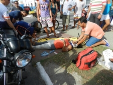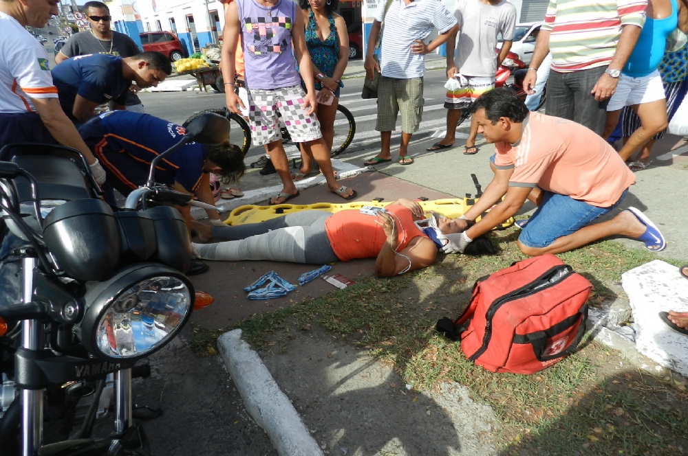 Uma gestante ficou ferida durante uma colisão entre duas motos no Centro de Aracaju. A gestante Adriana Pinto Santos estava com seu esposo na moto quando houve a colisão no cruzamento das avenida Coelho e Campos com Pedro Calazans. A vítima foi encaminhada ao Hospital Urgência de Sergipe (Huse) onde continua internada.